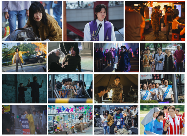 그럼에도 불구하고 매일 성당을 나와 기도를 드리는 신도들, 다 같이 모여 이야기를 나누는 모습들은 피할 수 없는 종말 앞에서도 남은 시간을 다 같이 함께 살아가고자 하는 사람들의 의지를 보여준다. 종말을 앞둔 사람들의 다양한 일상이 담긴 보도스틸을 공개한 ‘종말의 바보’는 다채로운 캐릭터와 이들의 서사, 이들이 함께 엇갈리고 어우러지며 펼칠 이야기로 전 세계 시청자들을 사로잡을 전망이다.