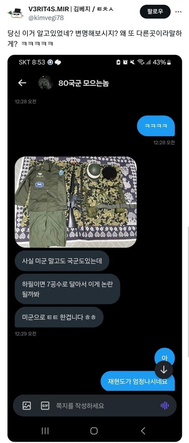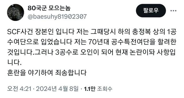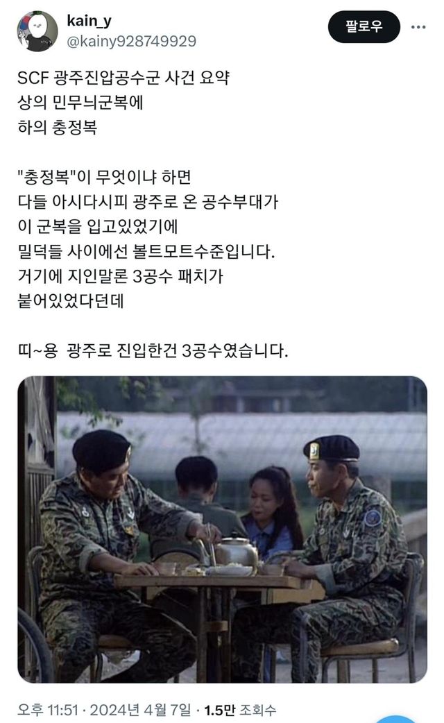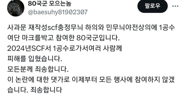 부산 SCF(서브컬쳐 페스티발)에서 누가 금기시되는 광주진압군 코스를 하고 옴