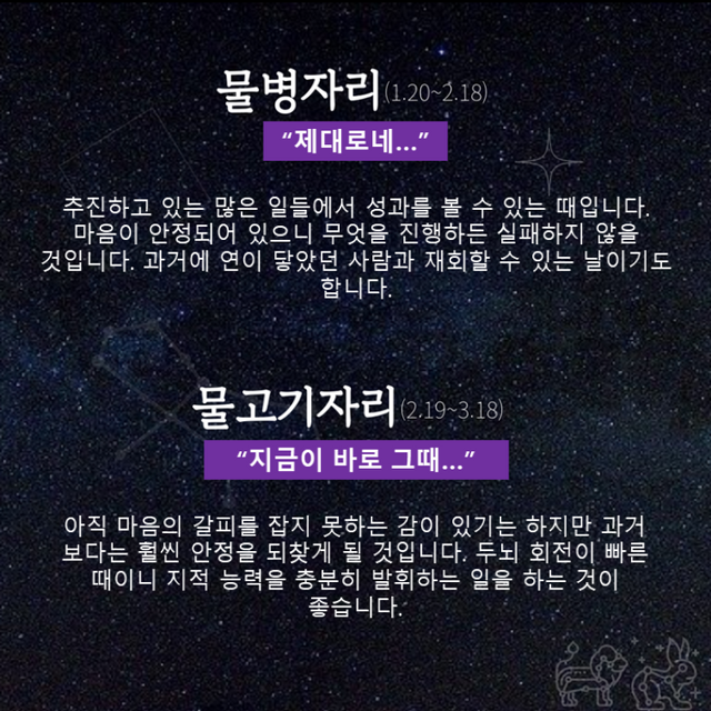 커플인 분이라면 조금은 따분할 수 있겠네요. 별다른 변화가 없으니 우리가 정말 연인이기는 한건지 곰곰이 생각하게 될 정도입니다. 일단 자기 자신부터 두 사람 사이를 더욱 좋게 만들기 위해 어떻게 하면 좋을지 생각해보는게 좋겠네요.
