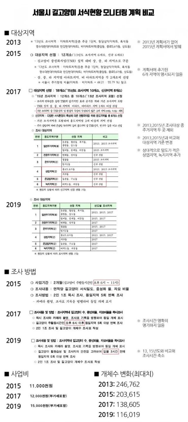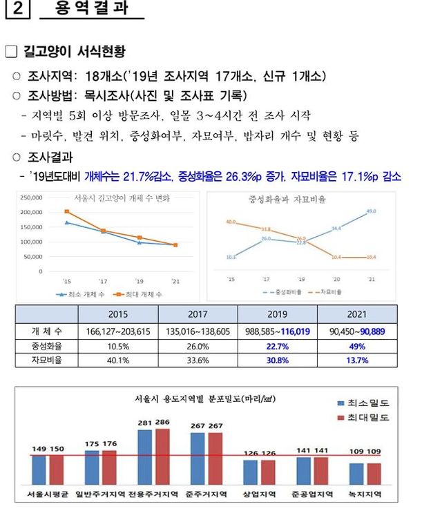 그래서 언플을 위함인지 2017년 이후로는 길고양이 밀도가 낮은 상업지역, 준공업지역, 녹지지역을 포함하여 통계를 내기 시작했고