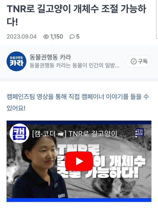 참고로 서울시 중성화 개체수는 1년에 1만마리다.