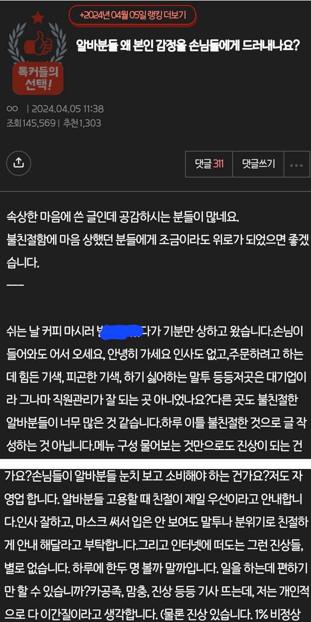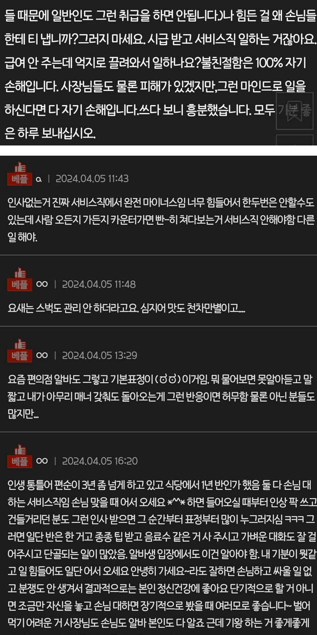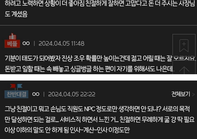 손님이 나 부르더니 화내서 죄송하다고 했던 기억 나네