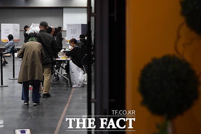 중앙선거관리위원회에 따르면 이날 오전 6시부터 진행한 투표에서 전체 유권자 4428만11명 가운데 815만7392여 명이 투표를 마쳤다. 여기에는 지난 5∼6일 치러진 사전투표(투표율 31.28%)는 포함되지 않았다. 사전투표는 거소·선상·재외투표와 함께 오후 1시부터 공개되는 투표율에 합산한다.