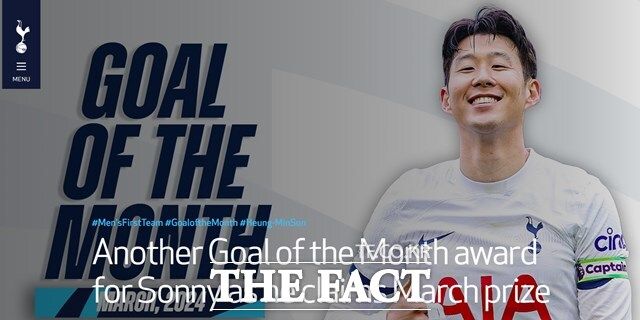 [더팩트 | 박순규 기자] '슈퍼 소니' 손흥민(31)이 4위 경쟁을 펼치는 아스톤 빌라전에서 터뜨린 골이 토트넘 팬 선정 '3월의 골' 영예를 안았다. 이로써 손흥민은 이번 시즌에만 4번째 '이달의 골'을 수상하며 최고의 피니셔이자 최다 수상자로 이름을 빛냈다.