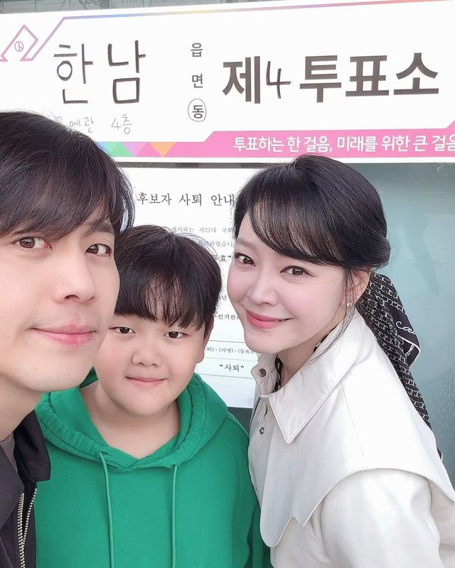 공개된 사진에는 투표소를 찾은 김소현, 손준호 부부 그리고 아들 손주안 군이 담겼다. 세 사람은 투표소 앞에서 카메라를 바라보며 미소를 짓고 있다.