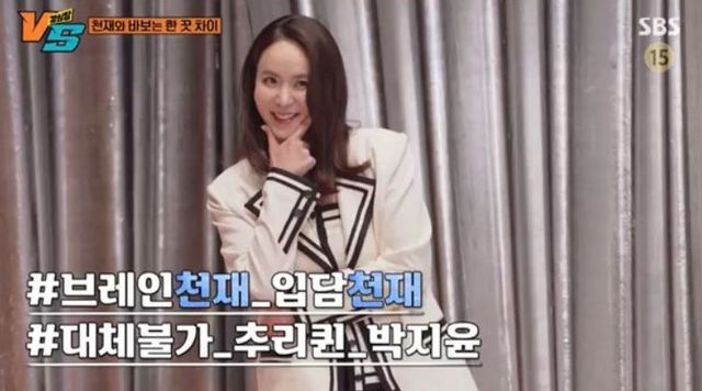 박지윤은 9일 방송된 SBS ‘강심장VS’에서 천재와 바보는 한 끗 차이 특집으로 남다른 토크 실력을 뽐냈다.