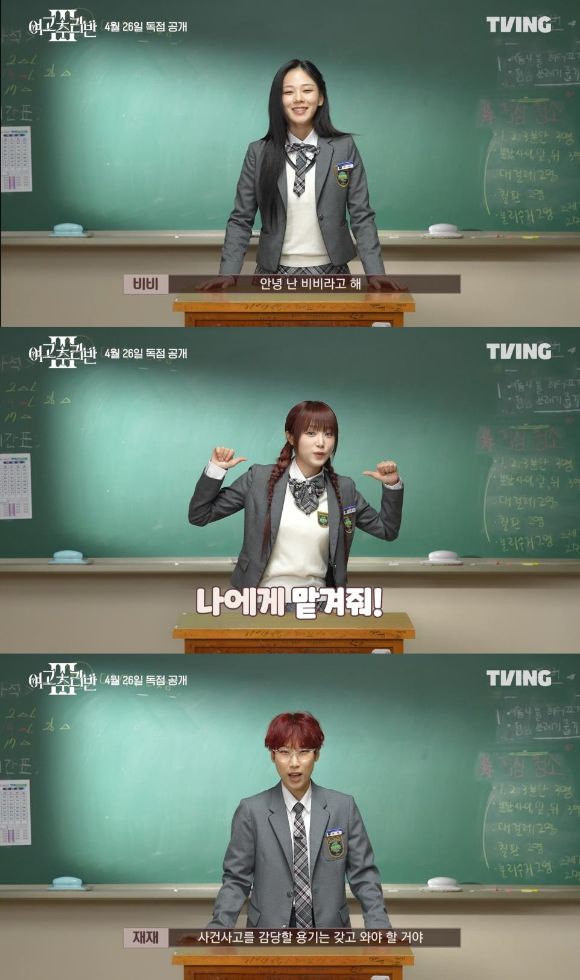 오는 26일 공개하는 티빙 오리지널 '여고추리반3'(연출 임수정, 김아림)는 무서운 저주가 떠도는 학교로 전학 간 추리반 학생들이 학교에 숨겨진 진실에 다가갈수록 더욱더 거대한 사건을 마주하면서 벌어지는 미스터리 어드벤처. 박지윤과 장도연에 이어 재재와 비비, 최예나가 인터뷰를 통해 시즌3에 대한 기대감을 드러냈다.