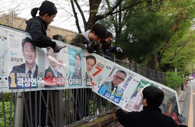 서울시선거관리위원회 관계자들이 11일 오전 서울 종로구 동숭로 일대에서 제22대 국회의원선거 벽보를 철거하고 있다.(사진=이데일리 방인권 기자)