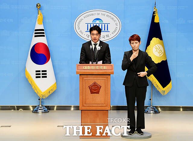 [더팩트ㅣ국회=배정한 기자] 오영환 새로운미래 총괄선대위원장이 11일 오전 서울 여의도 국회 의원회관에서 기자회견을 열고 총선 결과에 대한 입장을 밝히고 있다.