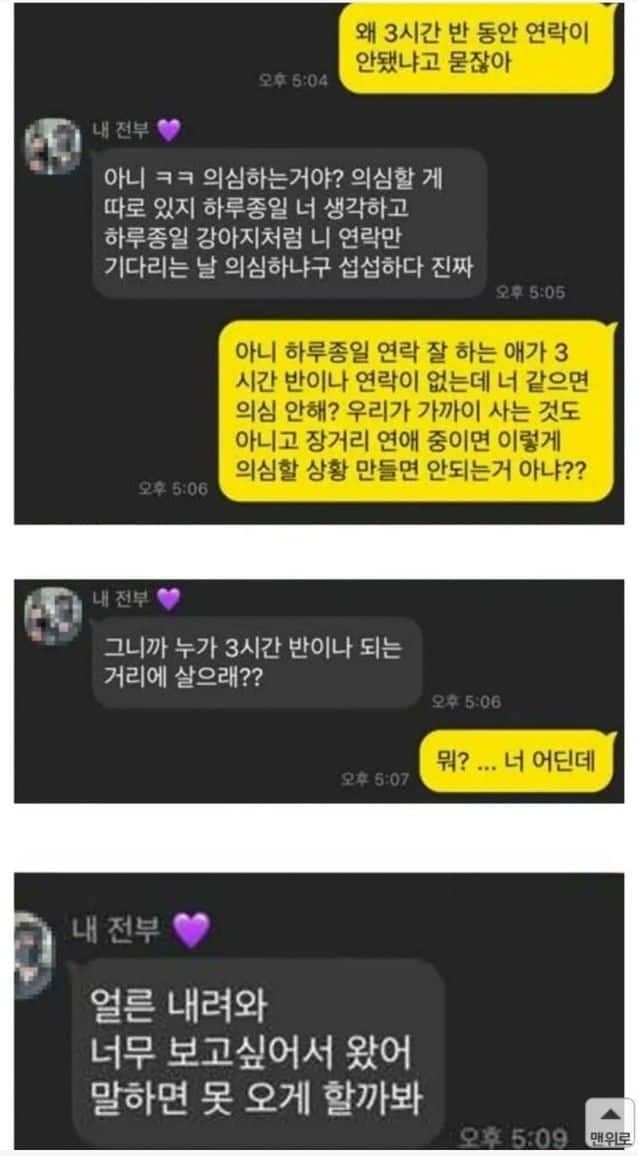 3시간 반이나 연락이 안되서 싸우는 커플