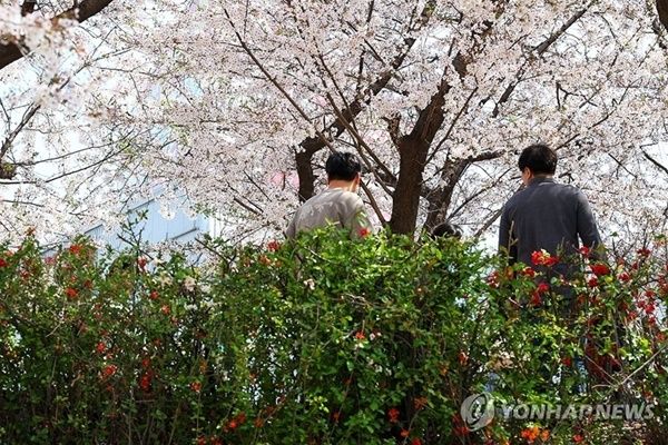 서울 양천구 안양천에서 시민들이 산책을 즐기고 있다. / 연합뉴스