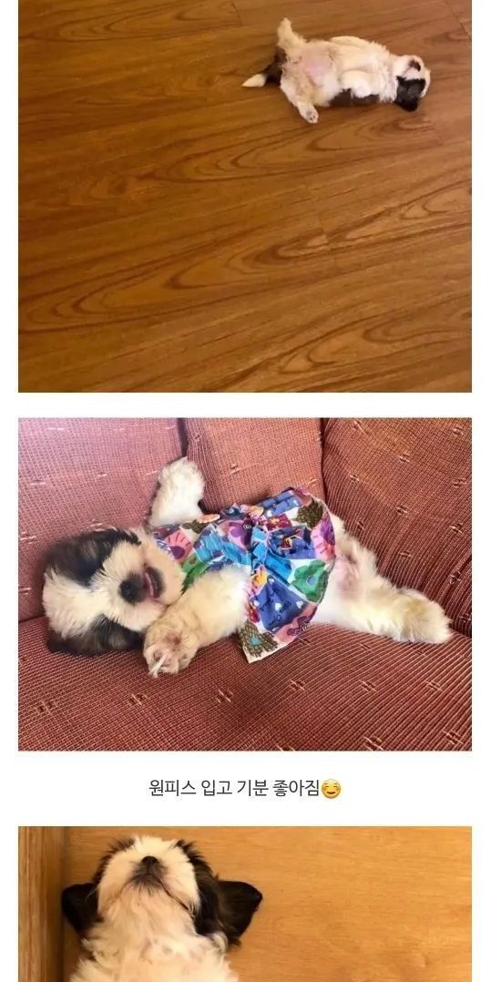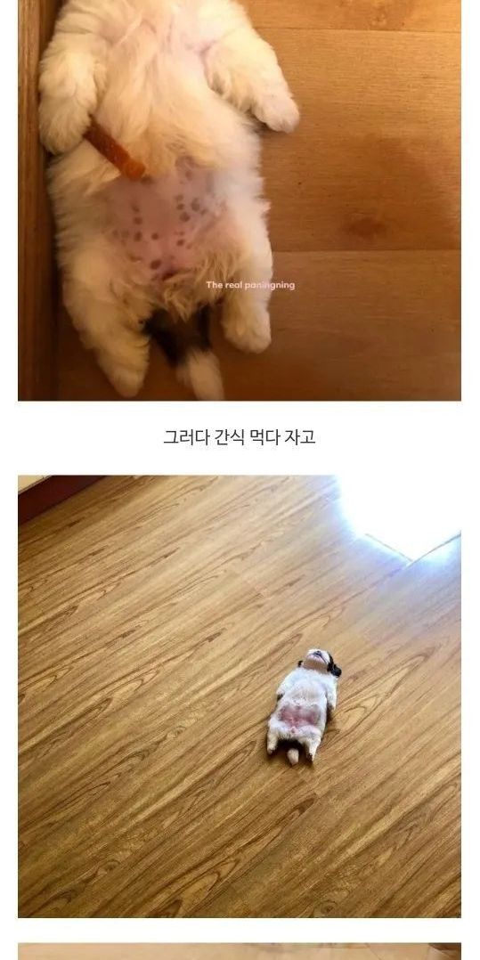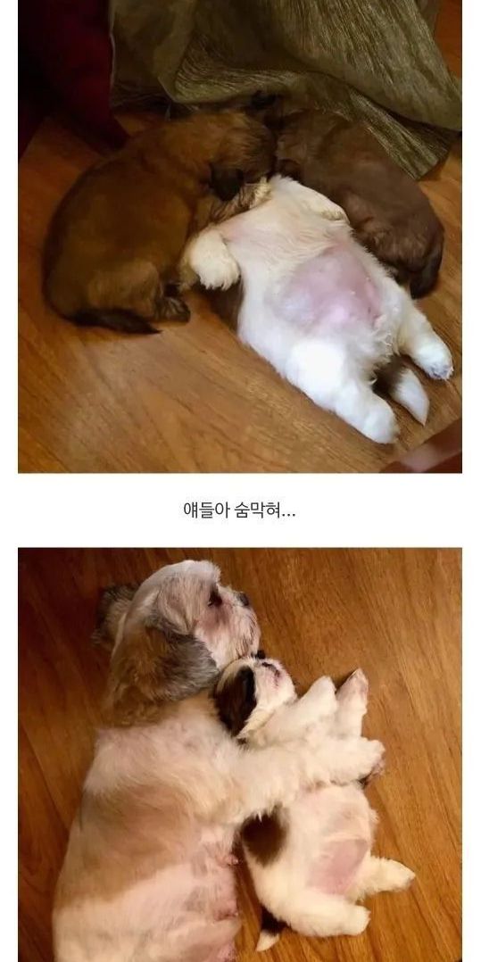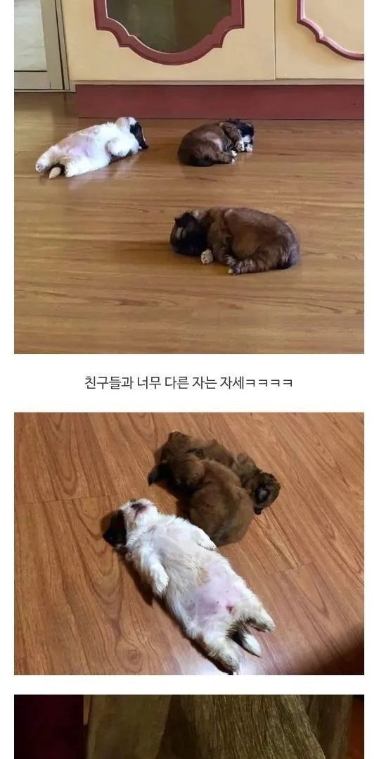 특이한 자세로 눕는걸 선호하는 아기 댕댕이