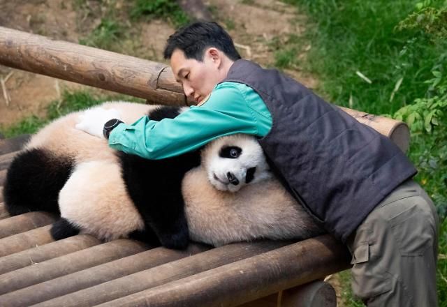 12日,爱宝乐园公开大熊猫“辉宝”“睿宝”近照,两只“小可爱”已与韩国观众见面满100天。