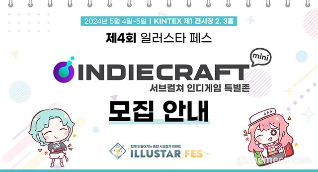 5월 4일부터 5일까지 열리는 제4회 일러스타 페스에 인디크래프트 미니 특별존을 열고, 우수 개발사 전시 부스를 마련한다. 특별존에 참여하고 싶다면 4월 22일까지 진행하는 2024 인디크래프트 출품작 모집에 지원하면 된다. 선정된 20개 개발사는 전시 공간 내 서브컬쳐 인디게임 특별존에 참가한다. 아울러 양사는 이번 행사 외에 협업이 계속할 것이라고 덧붙였다.