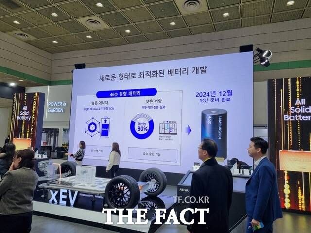 1분기 유일한 흑자를 기록하는 등 삼성SDI는 비교적 업황 부침을 원만하게 대처하고 있다는 평가다. 사진은 지난달 인터배터리 2024에서 차세대 배터리 로드맵을 소개하고 있는 삼성SDI. /더팩트 DB