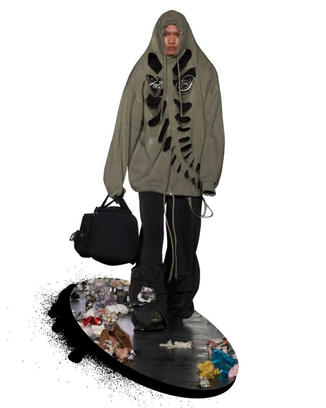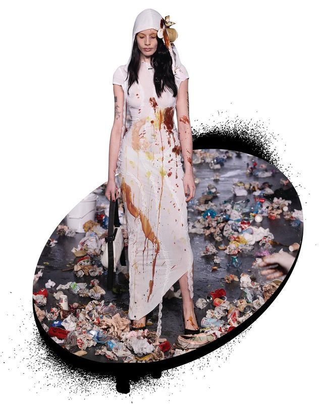 크리에이티브 디렉터 베아테 칼손이 이끄는 브랜드 아바바브. 재고와 자투리 원단을 활용해 지속 가능한 패션에 동참하고 있다. 사회 문제를 다양한 작품으로 풀어내는 아티스트이기도 한 베아테 칼손은 사회를 풍자하는 퍼포먼스로 관객에게 암시적인 메시지를 던지곤 한다. 최근 밀란 패션위크에서 진행한 2024 F/W 쇼에서는 모델에게 쓰레기 세례를 퍼붓는 런웨이를 선보여 대중의 입방아에 올랐다. 악플과 비판이 만연한 사이버 세상을 표현한 것이라고.