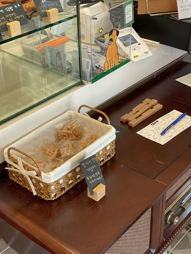 시그너처 메뉴인 반미 샌드위치는 귀리 우유, 비건 버터, 현미유, 코코넛 오일을 사용해 만든 빵 위에 콩고기를 올린다. 고수 유무는 선택할 수 있으니 취항에 따라 즐겨보도록! 반려 동물을 위한 메뉴도 있으니 우리집 댕댕이에게 귀리 우유로 만든 멍푸치노 한 잔을 권해보자.