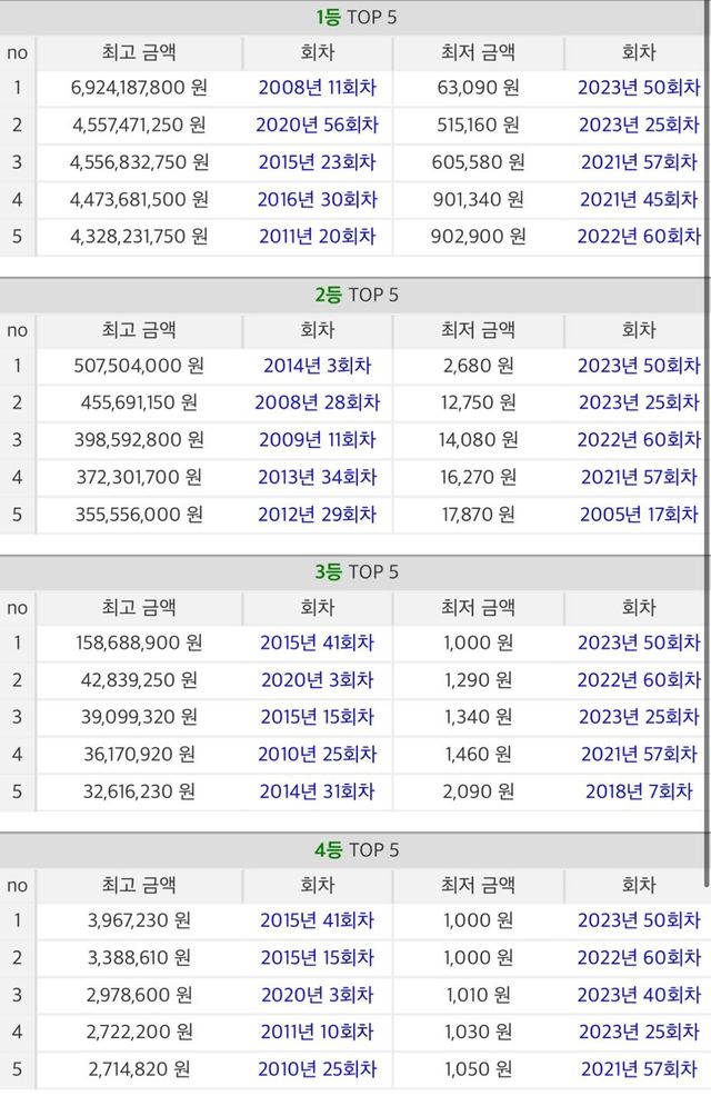 압도적으로 역대 최저 당첨금 갱신해버림 ㅋㅋㅋㅋ
