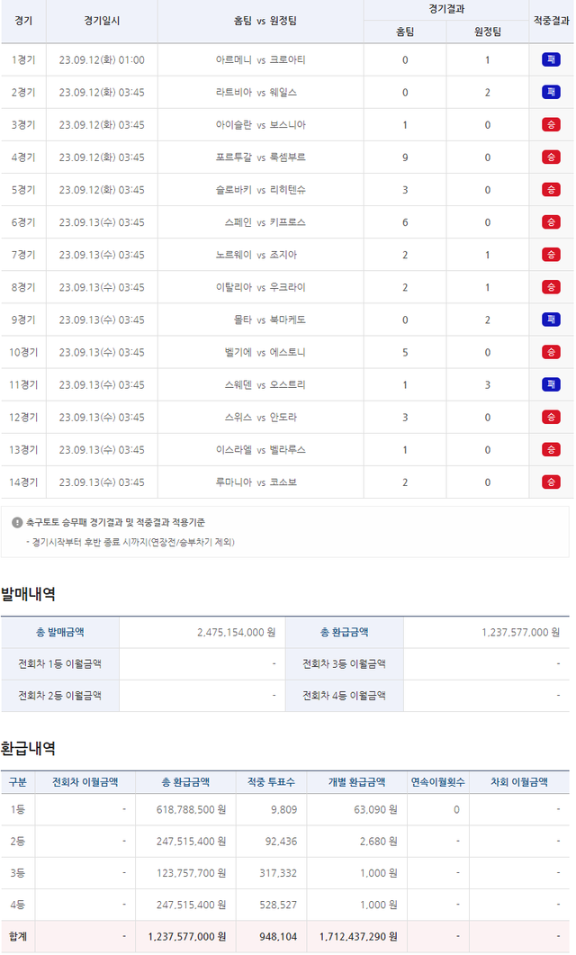 그동안 역대 승무패 1등 최저 당첨금이 51만 5천원이였는데