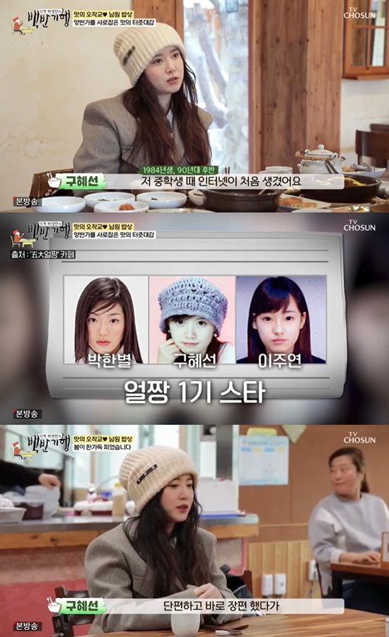 이날 구혜선은 허영만과 함께 전라북도 남원의 맛집들을 찾았다. 음식을 먹으면서 허영만은 구혜선이 '5대 얼짱'으로 연예계에 입문한 것을 언급했다.