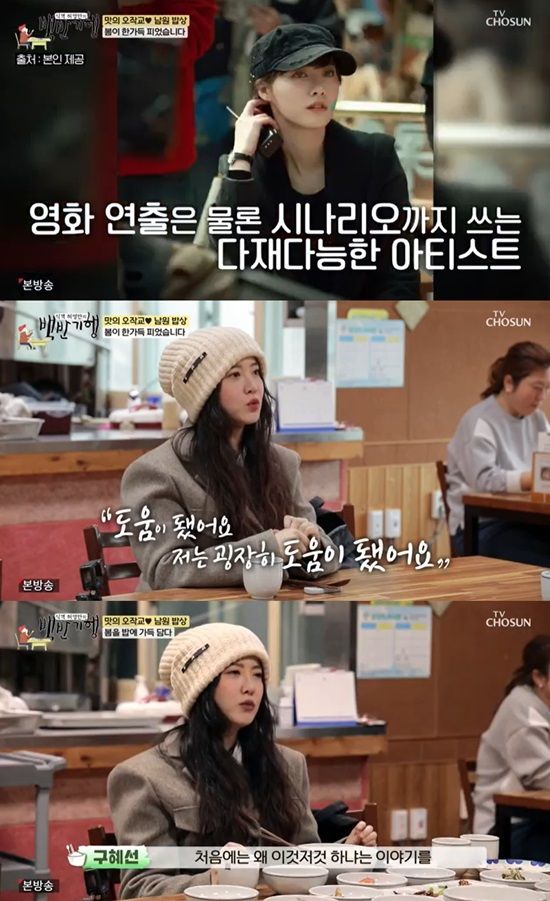 14일 방송된 TV조선 '식객 허영만의 백반기행'(이하 '백반기행')에는 배우 구혜선이 게스트로 출연했다.