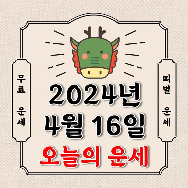 오늘의 운세 2024년 4월 16일 화요일 (음력 3월 8일 / 띠별 운세 / 생년월일 운세)에 대해 알아 보겠습니다.