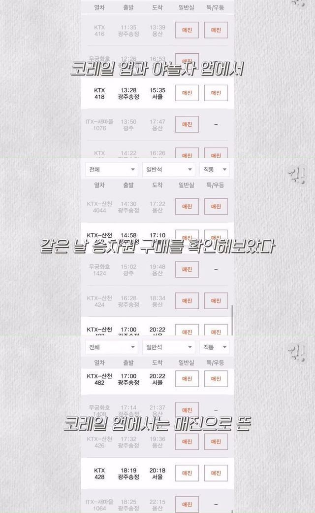 1. KTX 공식 앱에서는 황금시간대 매진인데 야놀자 앱에서는 좌석이 널널하게 남아있음