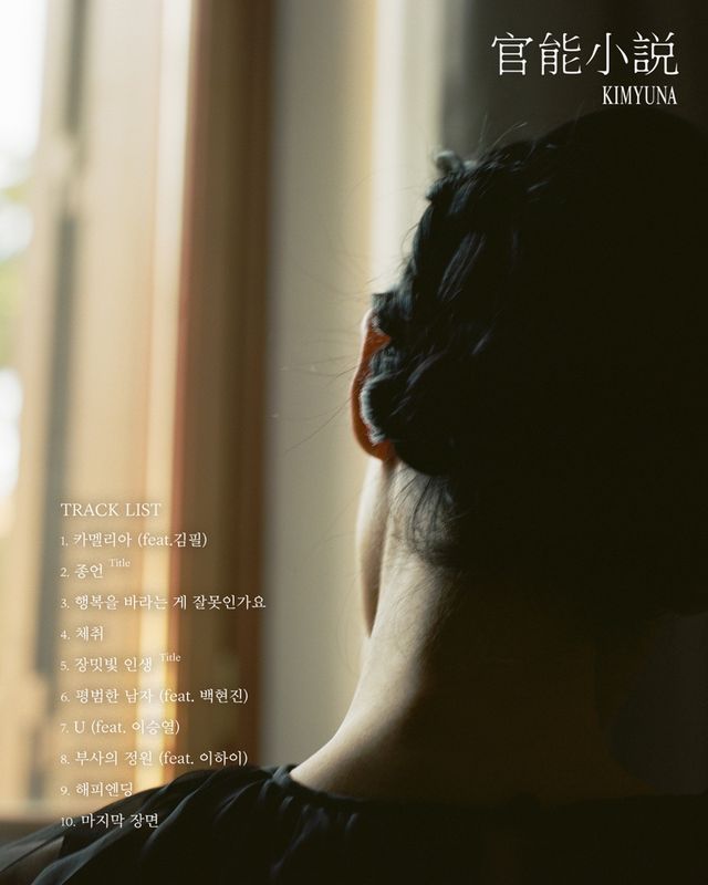 김윤아는 공식 계정을 통해 정규 5집 '관능소설'의 트랙리스트를 공개했다. 이번 앨범을 꽉 채운 총 10곡의 곡명이 공개됐으며, 더블 타이틀 곡으로 ‘장밋빛 인생’과 ‘종언’을 내세웠다.