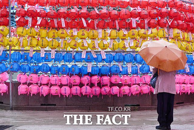 [더팩트ㅣ장윤석 기자] 불기 2568년 부처님 오신날을 한 달 앞둔 15일 오전 서울 종로구 조계사 경내에 오색 연등이 걸려 있다.