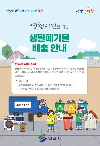 최기문 영천시장은 “올바르고 정확한 폐기물 배출을 통해 살기 좋은 클린 영천 만들기에 시민들도 적극 동참해 주시기를 당부드린다.”라고 강조했다