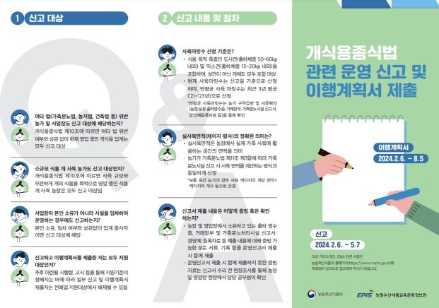이에 식용을 위해 개를 사육하는 농장주(개사육농장), 도살·유통하거나 식용을 목적으로 개를 원료로 사용해 만든 식품을 유통·판매하는 자는 기한 내 증빙자료와 함께 운영신고서를 작성·제출해야 하며 8월 5일까지 개식용 종식 이행계획서를 제출해야 한다.