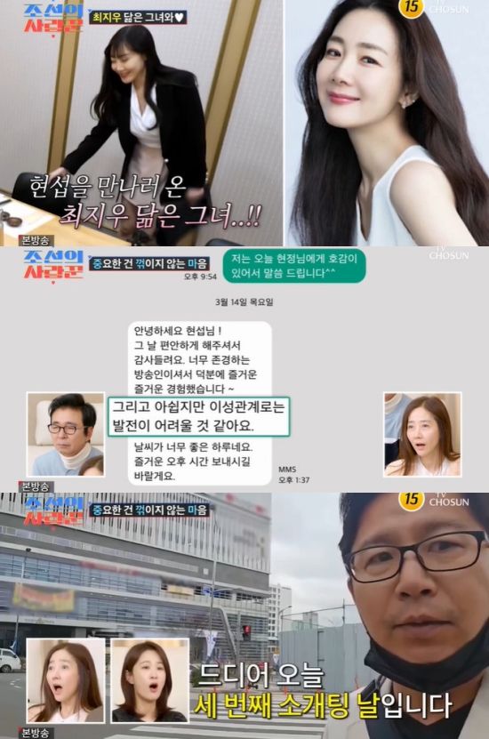 이후 심혜진과 결혼정보회사 대표는 다른 장소에서 심현섭의 소개팅을 모니터 했다. 심혜진은 "최지우 느낌이 살짝 있다"라며 밝혔다.