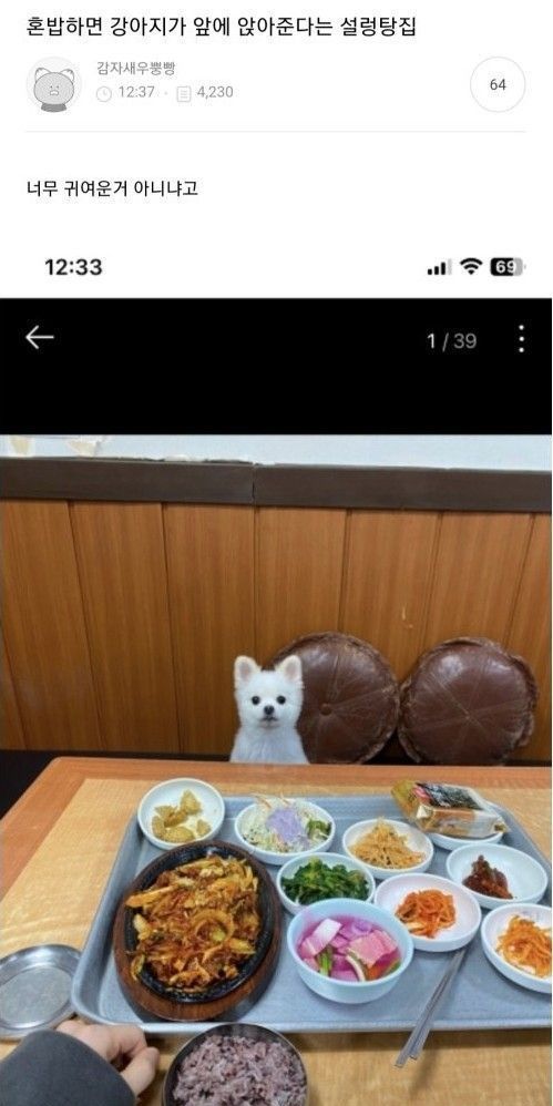 혼밥하면 앞에 강아지가 있어주는 설렁탕집