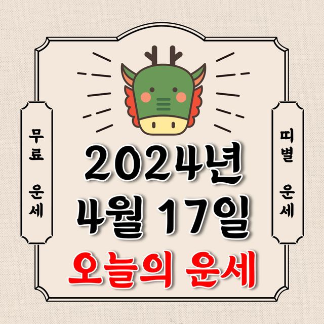 오늘의 운세 2024년 4월 17일 수요일 (음력 3월 9일 / 띠별 운세 / 생년월일 운세)에 대해 알아 보겠습니다.