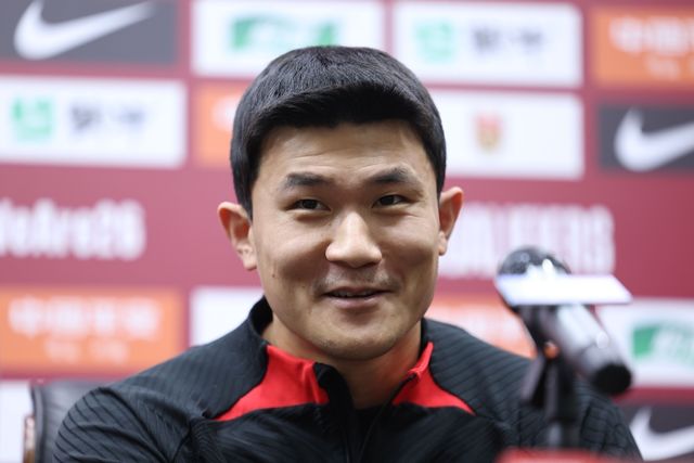 지난해 11월 20일 오후 중국 선전 유니버시아드 스포츠센터에서 열린 축구대표팀 공식 기자회견에서 김민재가 취재진 질문에 답하고 있다. / 연합뉴스