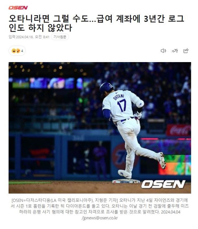 검사측에서 은행에서 오오타니가 로그인 한 기록을 요청...