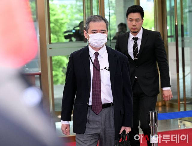 아시아투데이 박성일 기자 = 미바에 다이스케 주한 일본대사관 총괄공사가 16일 오전 서울 종로구 외교부 청사로 초치되고 있다. 정부는 이날 일본이 외교청서를 통해 독도는 일본 땅이라고 거듭 주장한 데 대해 깊은 유감을 표하며 즉각 철회를 촉구했다.