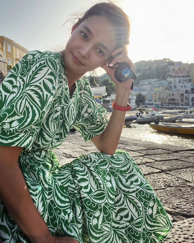 공개된 사진 속 안현모는 이탈리아의 폰자 섬에서 여유로운 시간을 보내고 있다.