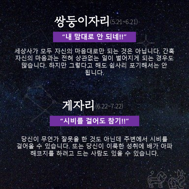 Δ 쌍둥이자리 : 내 맘대로 안 되네!!