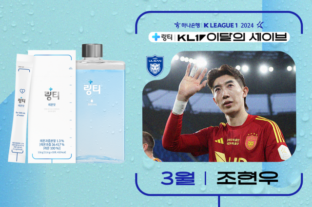 울산 조현우가 2024시즌 3월 K리그 ‘의사가 만든 링티 이달의 세이브’를 수상했다.
