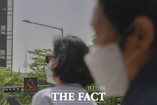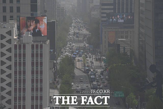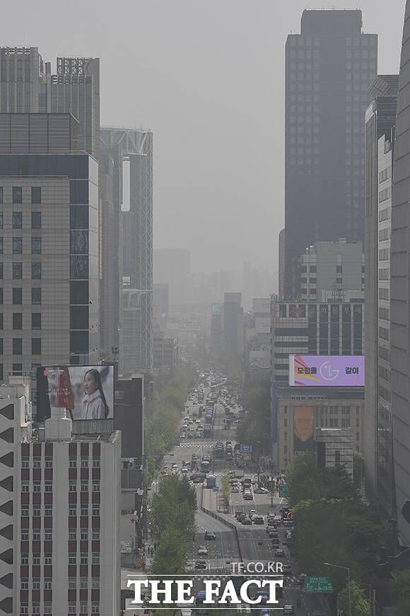 [더팩트ㅣ장윤석 기자] 전국 대부분 지역의 미세먼지 농도가 '나쁨' 수준을 보이는 17일 오전 서울 종로구에서 바라본 도심 일대가 뿌옇게 보이고 있다.