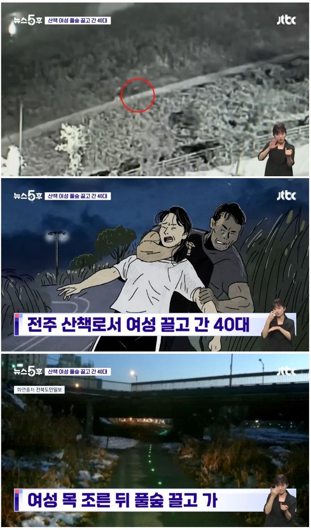 여성이 격하게 저항해 뿌리치고 도망감 범인은 체포됨