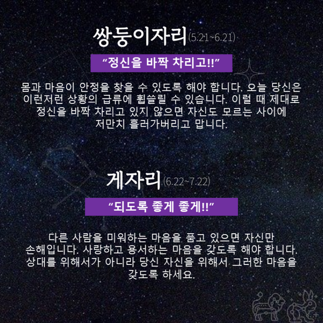 Δ 쌍둥이자리 : 정신을 바짝 차리고!!