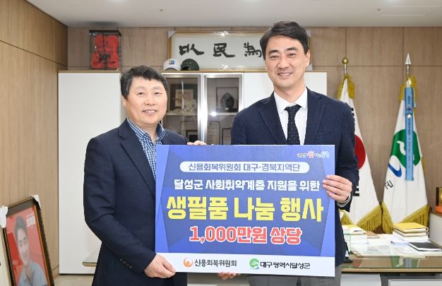 [파이낸셜경제=김영란 기자] 달성군은 신용회복위원회 대구지부(단장 이시형)에서 지역 내 저소득 취약계층을 지원하기 위해 약 200가구를 대상으로 생필품(1000만 원 상당) 전달 기탁식을 진행했다고 밝혔다.