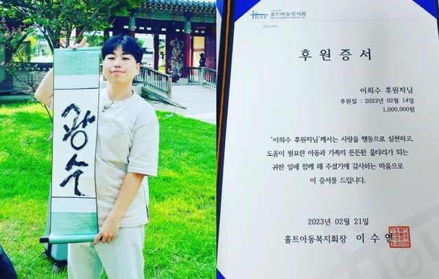 백만원 (출연료 전액기부로 확실히 알게 됨)