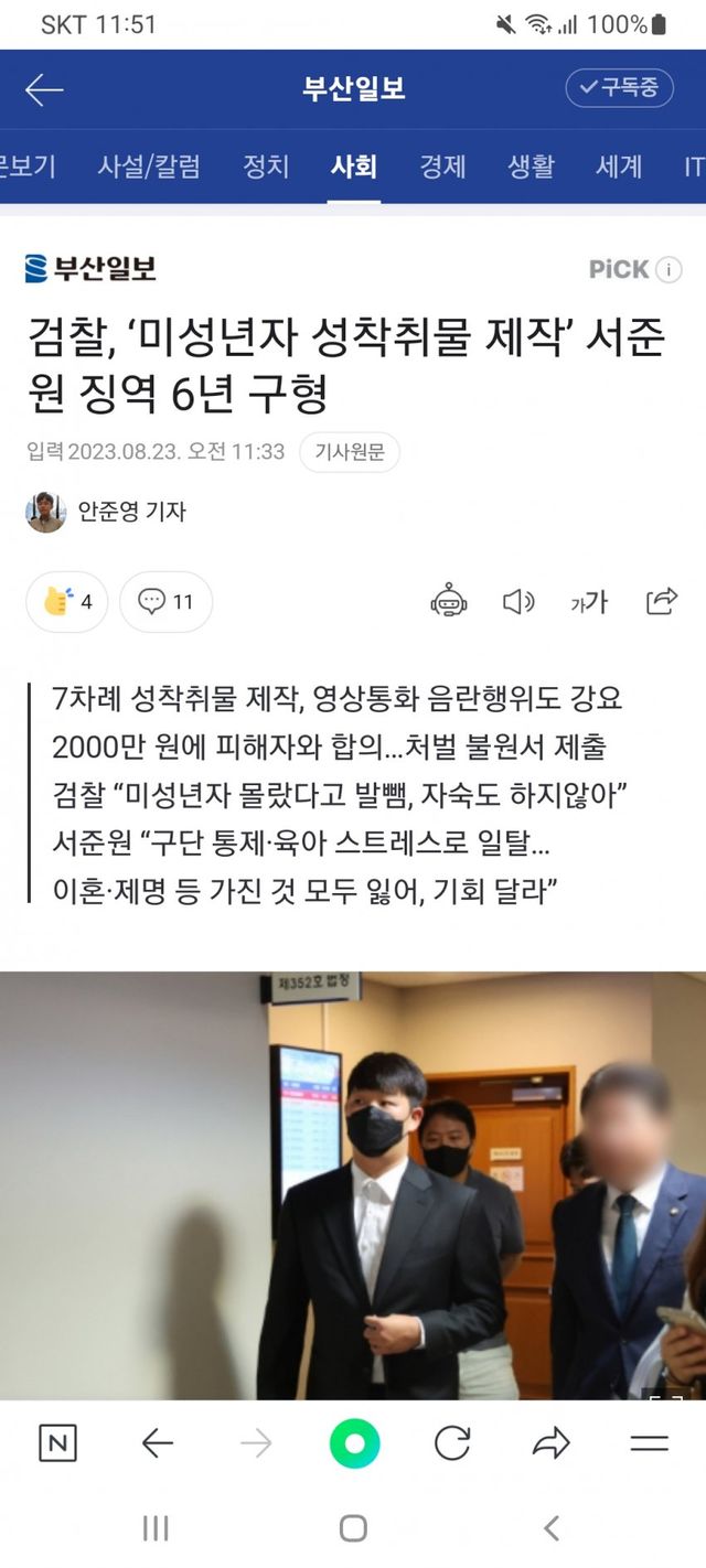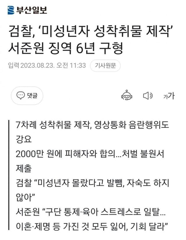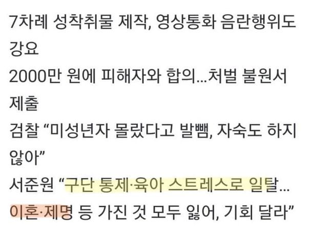 – 관련게시물 : 서준원 “미성년자인 줄 알았다” 입장번복