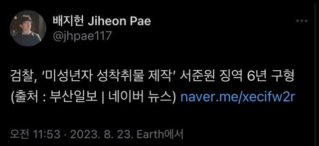 – 관련게시물 : 서준원, 미성년자 협박하며 음란행위 영상 요구했다
