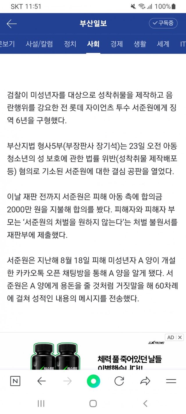 – 관련게시물 : [단독] 롯데 투수 서준원, 미성년자 약취·유인 혐의 검찰 수사
