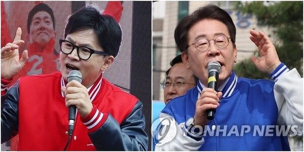 대전/세종/충청은 이재명 22%·한동훈 14%, 광주/전라 이재명 37%·한동훈 3%로 나타났다. PK에서는 이재명 20%·한동훈 20%로 동률을 기록했고, 대구/경북에서는 이재명 23%·한동훈 26%로 나타났다.