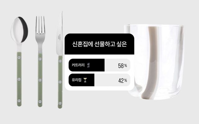 〈엘르 데코〉 인스타그램 팔로워에게 물었습니다. 58%가 커트러리에, 42%가 유리컵에 투표했네요.